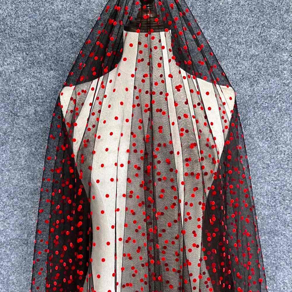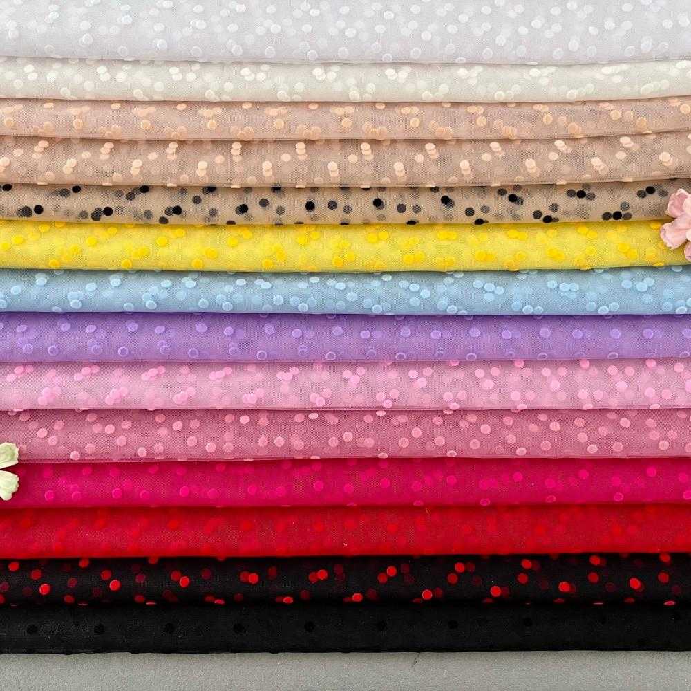 MYSWBZRDD Tull flocking ofrece una transpirabilidad excepcional y propiedades de absorción de la humedad.Nylon mesh es extremadamente ligera, lo que evita que las prendas se sientan pesadas o incómodas, permitiendo una mayor libertad de movimiento. Es ligera en general, tiene buena caída y es fácil de cortar y coser. Además, es duradera, resistente a las arrugas, mantiene su forma y tiene una gran solidez del color.Tull flocking ofrece efectos visuales y decorativos excepcionales y se puede producir en una variedad de colores, con diferentes alturas de pelo y patrones, lo que da como resultado una apariencia lujosa, tridimensional y sofisticada. Además, presume de una gran expresividad cromática.Este tejido permite un diseño flexible de prendas, ofreciendo una amplia gama de posibilidades creativas y adaptándose a diversos estilos.